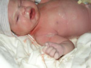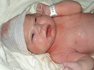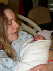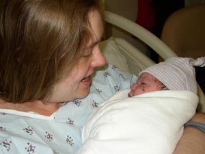 Vital Stats and Details: Charlotte was born on October 2, 2003 at 2:03 PM. (10-2-2003 at 2:03!) Mary had a scheduled induction at 39 weeks, 1 day. We arrived at the hospital at 5:15 AM. Mary was hooked up to the Pitocin right away, and by about 10:00, things were getting interesting (to say the least!) and Mary had her epidural. By 12:30 PM, Mary was fully dilated and ready to push. An hour and a half later, Charlotte made her appearance, all nine pounds, seven ounces of her and "posterior" -- facing up to the sky. We were all amazed that she was so big and so beautiful! At first we didn't know how long she was. Our family pediatrician measured her on Friday, and she is 20 3/4 inches long. A chunky monkey! |