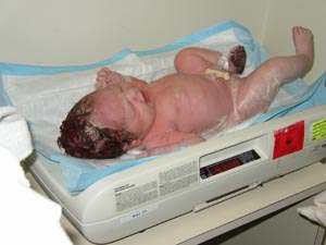 A big girl.. you can see how her head was a little squished coming out.