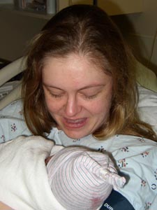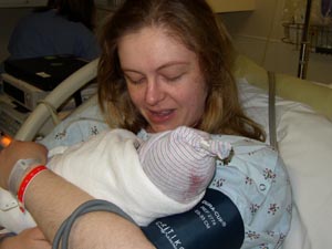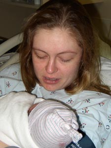 Mama and her baby - tired and happy. We kept the messy stocking cap