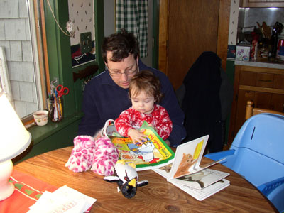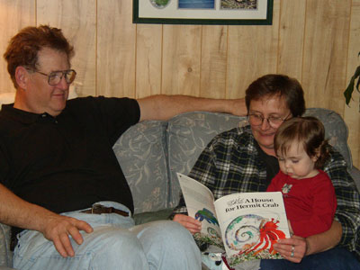 Charlotte and her Grammy and Grampy reading together