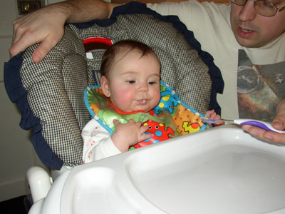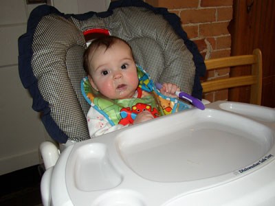 Today was a big day! I had my first rice cereal and moved to my big car seat. Mama doesn't know what to make of all the changes!