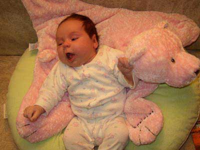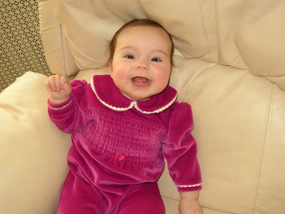Update: Charlotte is almost 23 months old now. At her last appointment on June 1, she was 24 lb, 13 oz and 34 3/4 inches! She is wearing 24 mo or 2T clothes and size 6 or 6 1/2 shoes.