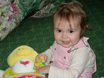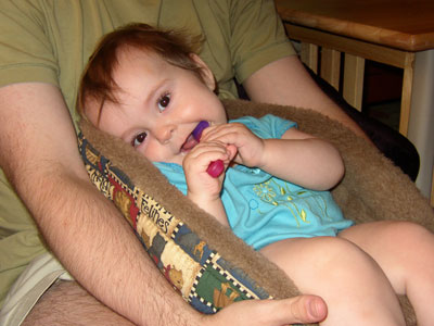 Physically, she is doing great. We haven't gotten her to wear her eyeglasses as much as we would like, but we're making progress! She wears them at least 1 hour each day, and sometimes more. She's not eating as well as she used to, but I suppose it's part of the ball game with an almost 2-year-old.
