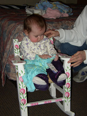 My rocker & romper, half-birthday gifts from Aunt Becca & Uncle Jim, and Grandma!