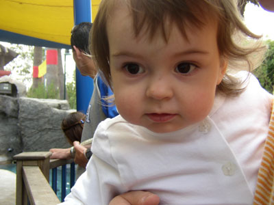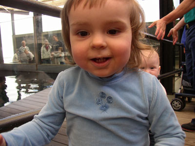 At the New England Aquarium, where we went with our playgroup! (my friend is peeking out from behind me!)