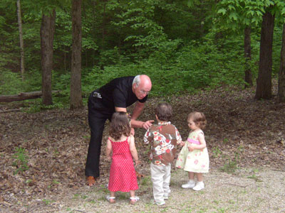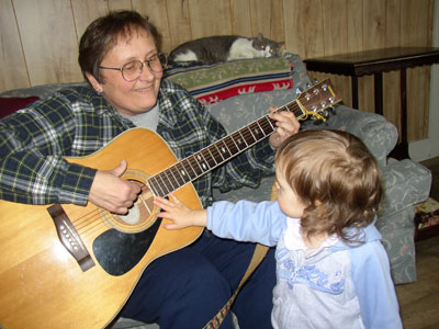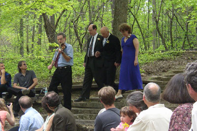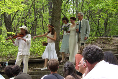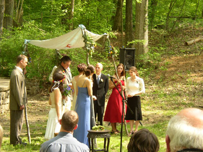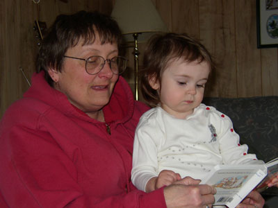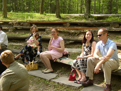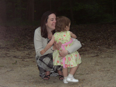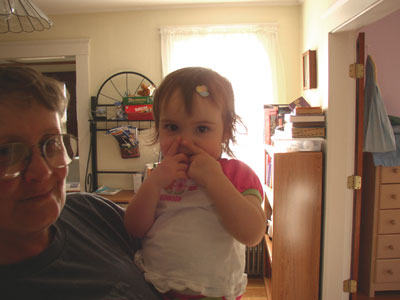 At the wedding ceremony: Charlotte asleep in Grandma's lap, Mama, Becca, Jim