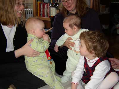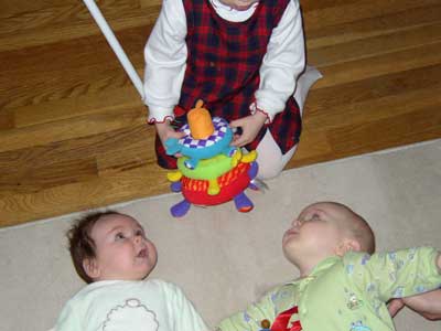 Sophie is entertaining the babies very well