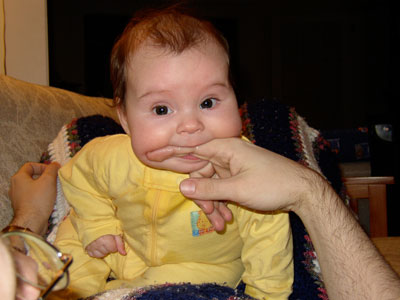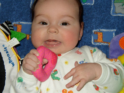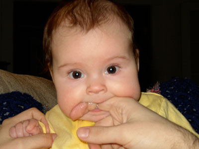 I started teething! No teeth yet, but I love to slobber and gnaw on people