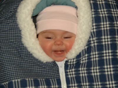 All bundled in my car seat cover and ready to go out... sort of...
