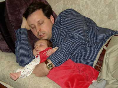 Zzzzz.... Napping with Daddy after his long drive home from work