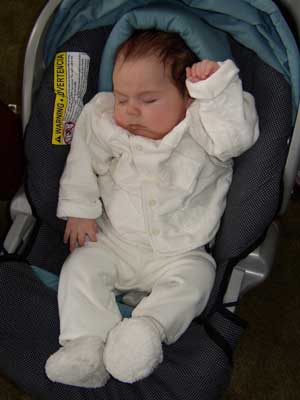 This is just to show how much she's grown - the picture on the right is from October 4th, when she was only 48 hours old. Now she really fills up that car seat! It won't be long before we need to get a bigger one...