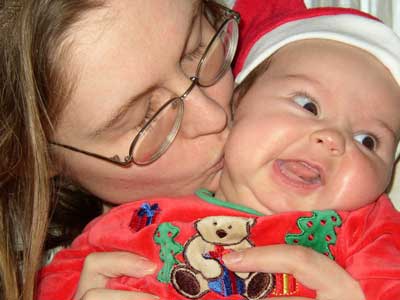 With Daddy and Kaleida-bug (favorite Christmas toy)