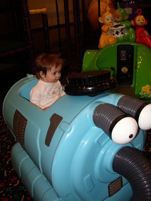 I got to meet the Noo Noo from Teletubbies (or one of his helpers, my mom says!)