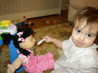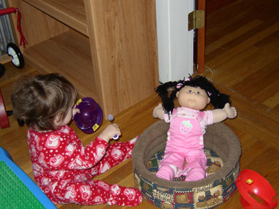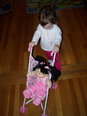 Taking Dolly for a walk in my new stroller (thank you Grandma!)