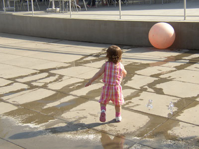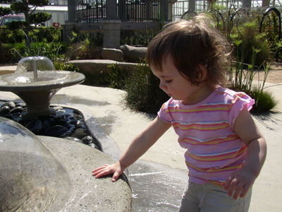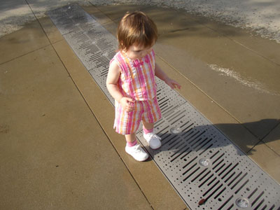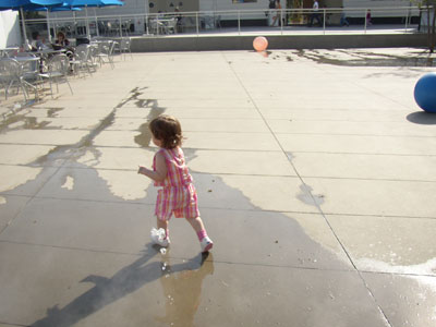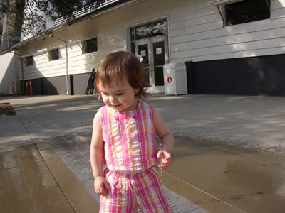 Whee! I'm wet! (Charlotte developed a knack of standing right over the fountains and getting splashed!)