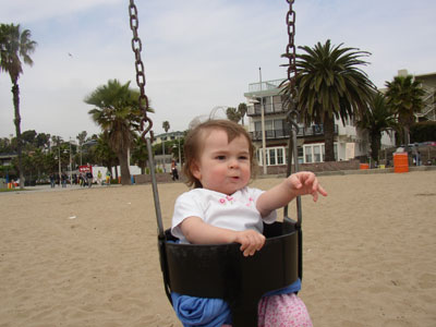 On the swingset at Muscle Beach, Santa Monica (I didn't realize there really was such a place!)