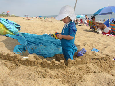 Building a sand fort with Daddy