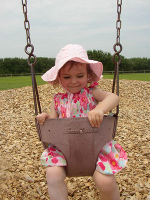 Charlotte swinging over some fresh mulch. Mulch is her favorite thing to play with. Gardeners beware!