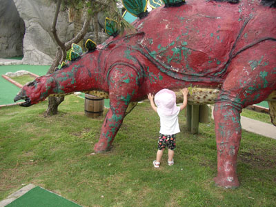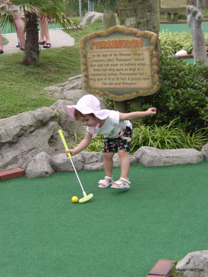 In the morning, we introduced Charlotte to the wonders of mini-golf at "Jurassic Putt." What a hoot. It would fit right in next to Pirate's Cove in Bar Harbor. (Except without sound effects -- rats-- some dinosaur roaring would have been funny!)