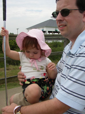 Charlotte is not such a golfer, but she did sort of get the idea of hitting the ball with the club.