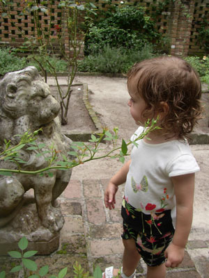 Talking with the lion in the Rose Garden