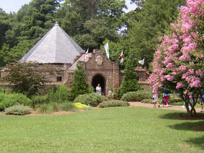The Elizabethan Gardens were one of my favorite stops on our vacation. They were gorgeous and Charlotte loved it. She is a big fan of anything green, flowering, or crawly. Again.... if only it hadn't been so muggy. Chris and Charlotte were both very sticky. I do better in the humidity than they do, but not by much.
