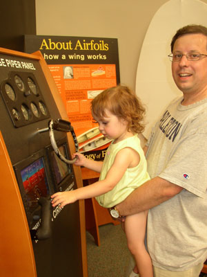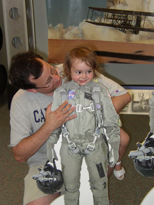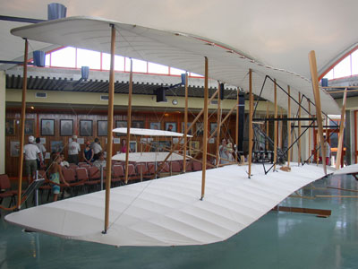 Replica of the Wright Brothers' plane (Charlotte and Daddy peeking through)