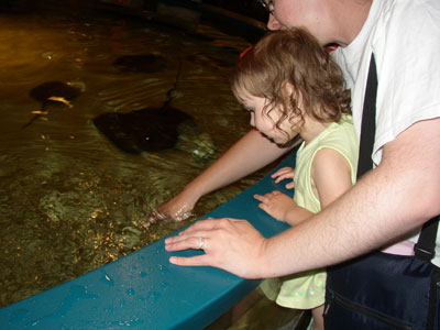 Looking for manta rays in the touch tank