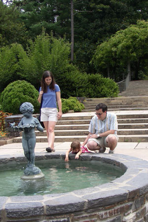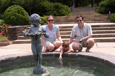 Splashing in the fountain at the park by Mike and Kendall's house