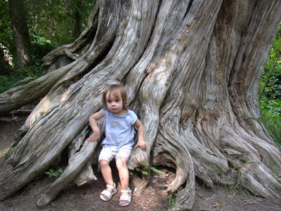 Charlotte is sitting on an arbor vitae tree that was supposedly over 1,000 years old when it died.